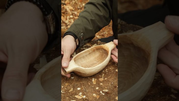 Carving birch bowl near my bushcraft hut 🛖🌲 #diy